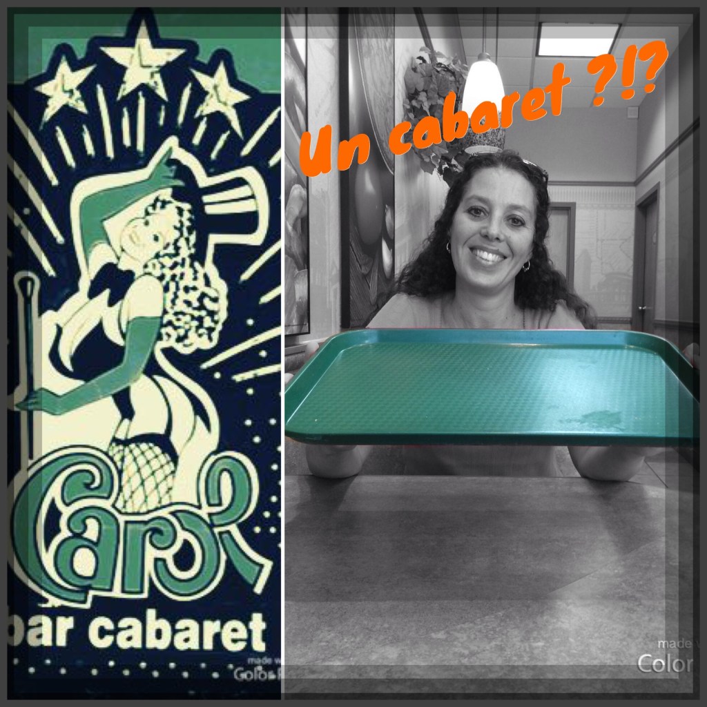Aussi, imaginez ma surprise lorsqu’en commandant un café dans un Tim Horton, on m’a dit de prendre un cabaret ! J’ai regardé autour de moi pour vérifier si je me trouvais à la bonne place. J’étais sûre que j’avais mal compris les propos de l’employé. Cependant, ce n’est que lorsqu’il me l’a répété, en pointant la pile de plateaux, que j’ai saisi la toute nouvelle signification de ce mot !