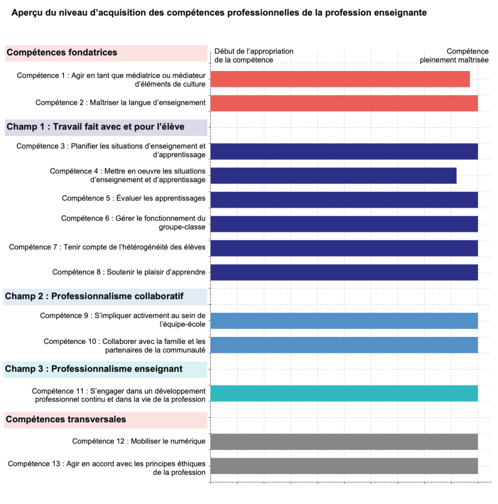 À plusieurs occasions, je me suis sentie dévalorisée, je perdais la confiance en moi. Or, les résultats obtenus me montraient bien le contraire. Le premier travail pratique lors du premier cours du séminaire de stage 1 consistait à remplir le Questionnaire d’autoévaluation pour le personnel enseignant du ministère de l’Éducation.